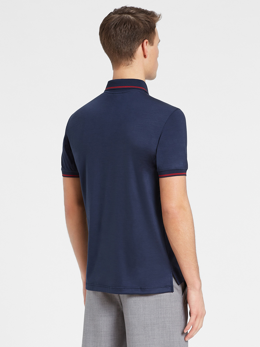 Weich und atmungsaktiv, dieses Poloshirt kombiniert die Leistung von 100% Reda Active® Merino Jersey mit dem unverwechselbarem Made in Italy Stil. Der Kragen mit drei Knöpfe, die Kontraststreifen und die kleinen Seitenschlitzte an der Unterseite zeichnen dieses Poloshirt für ein besonders stilvolles Stück aus.