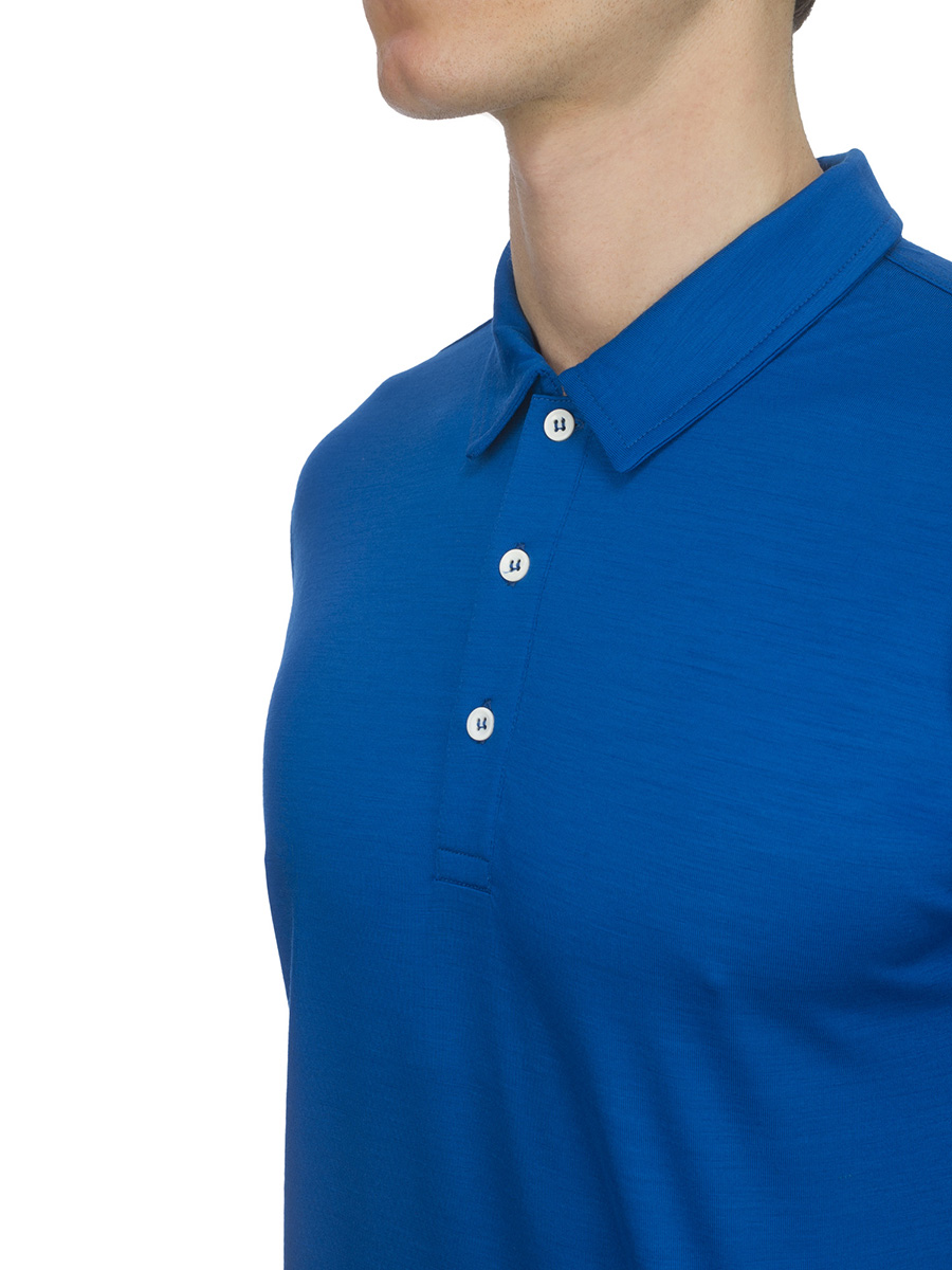 Dieses Poloshirt Optimal Comfort® besteht aus 100% Merino Jersey Reda Active®, einem leistungsfähigen Funktionsgewebe, das Weichheit und Atmungsaktivität kombiniert.