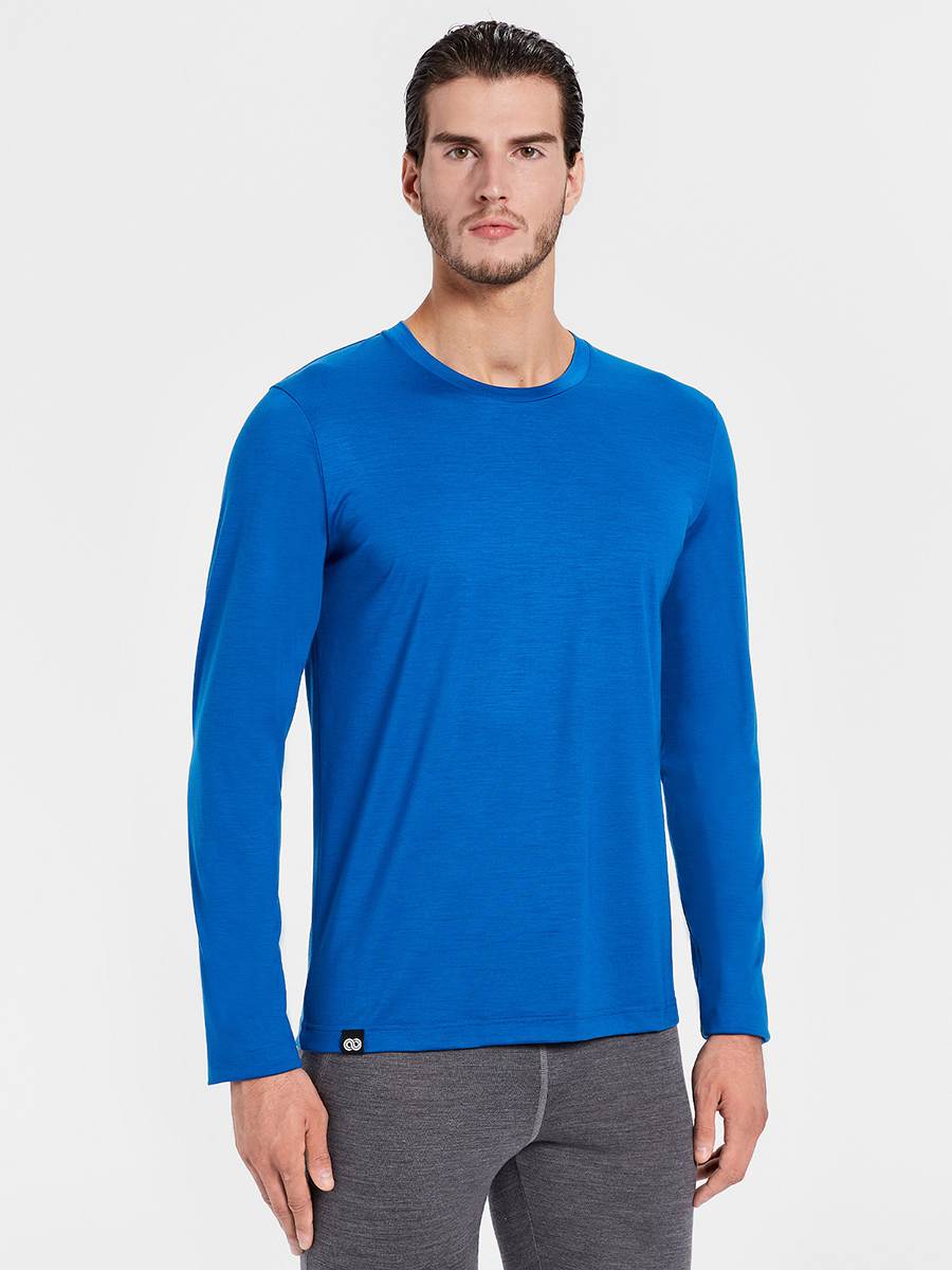 • Langärmliges T-Shirt mit Rundhalsausschnitt aus leichtem Jersey, natürlich wärmeregulierend und weich beim Hautkontakt. Ideal für Freizeit- und Outdoor-Aktivitäten.