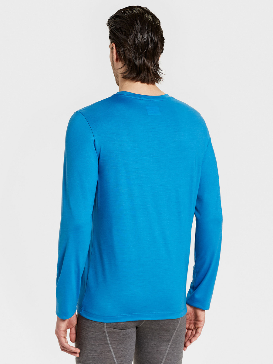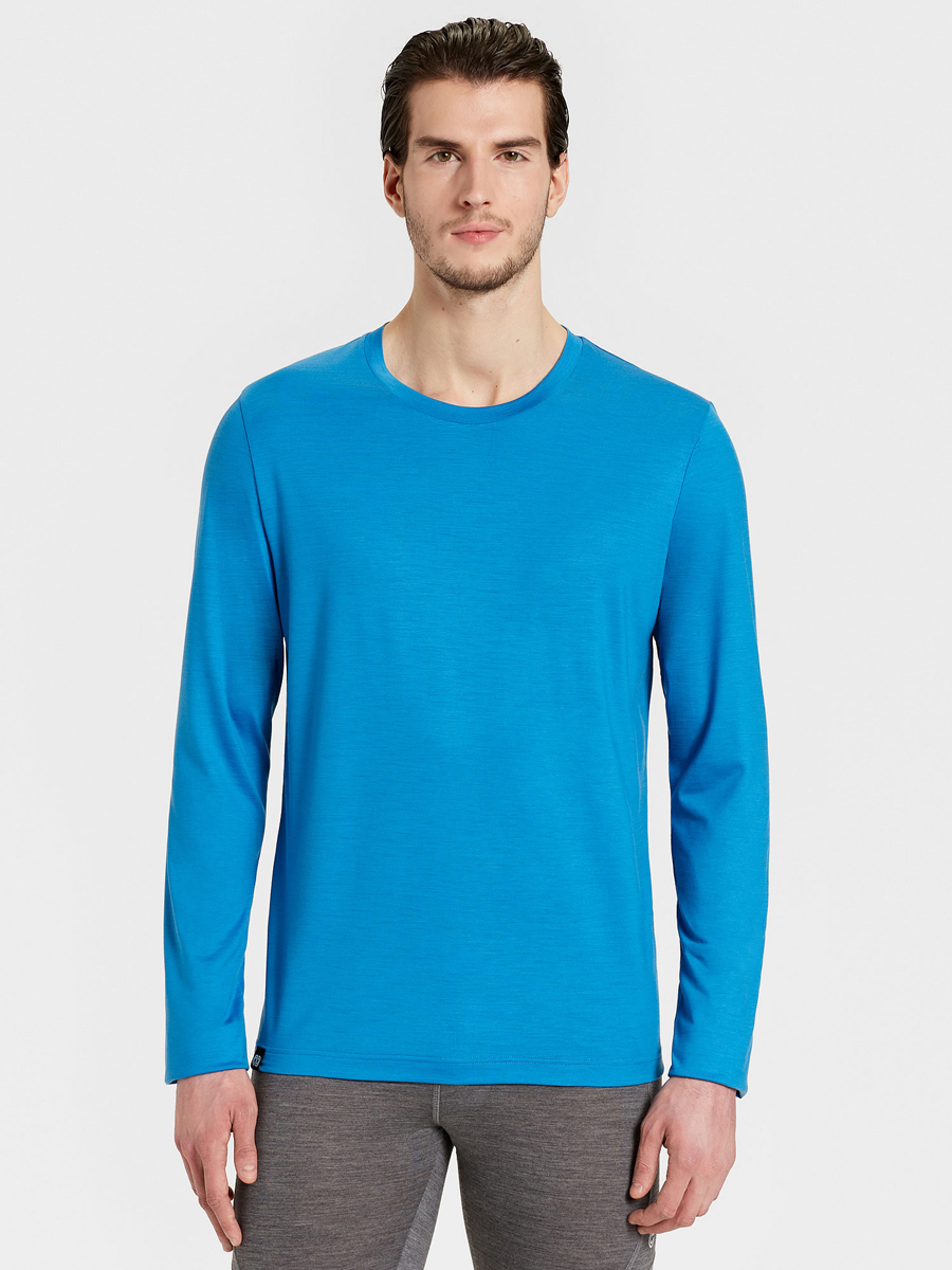 • Langärmliges T-Shirt mit Rundhalsausschnitt aus leichtem Jersey, natürlich wärmeregulierend und weich beim Hautkontakt. Ideal für Freizeit- und Outdoor-Aktivitäten.