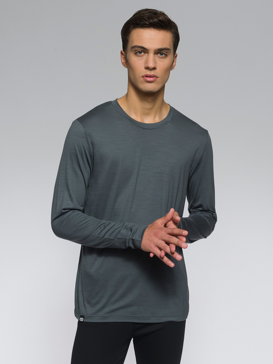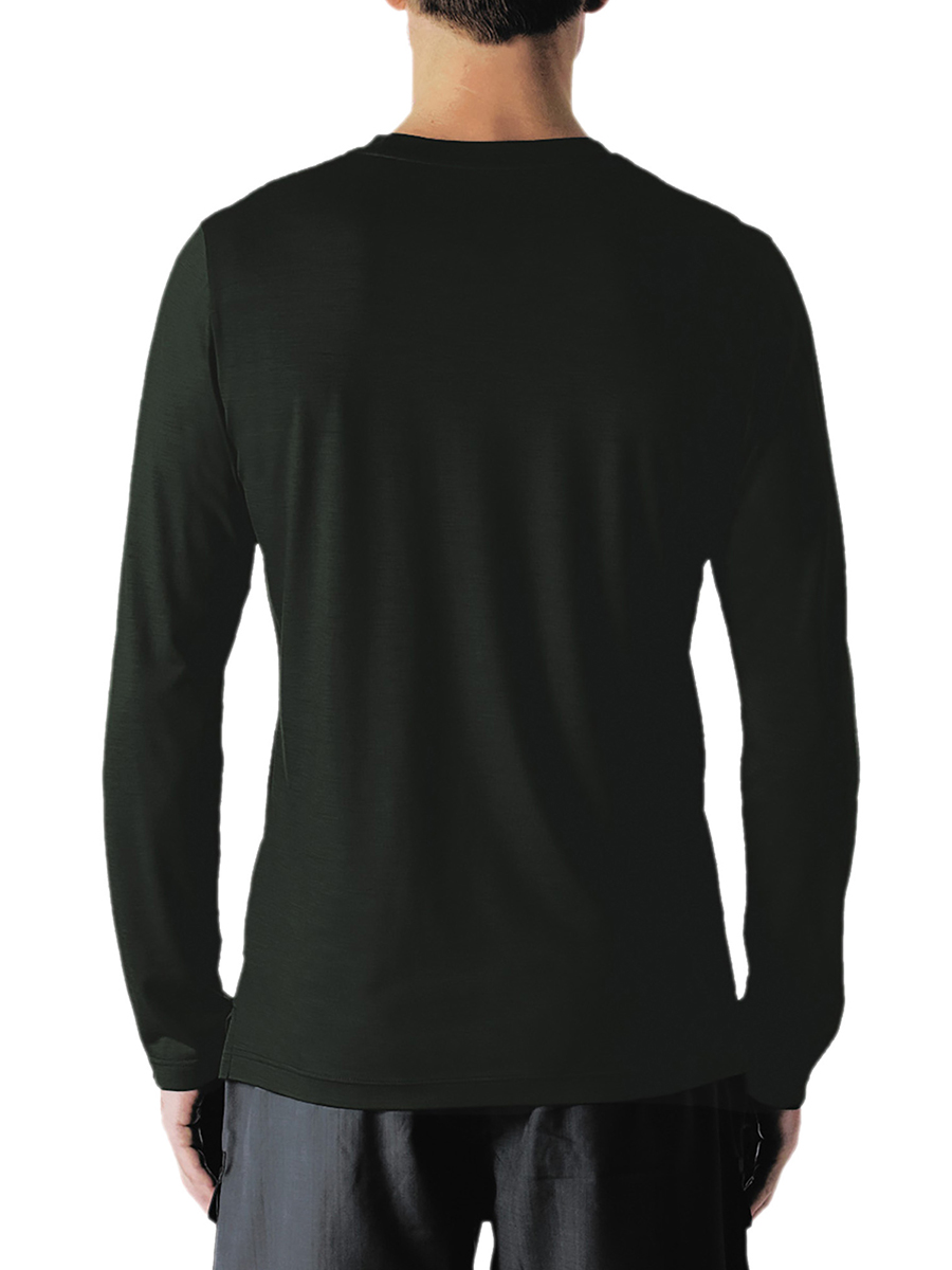 Langärmliges T-Shirt mit Rundhalsausschnitt aus leichtem Jersey, natürlich wärmeregulierend und weich beim Hautkontakt. Ideal für Freizeit- und Outdoor-Aktivitäten.