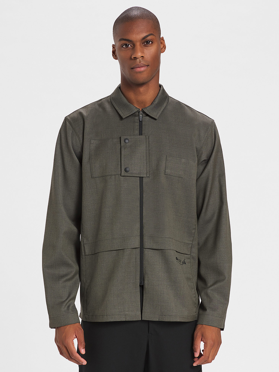 Sportliches Overshirt mit vollem selbstschließenden technischen Reißverschluss, gefaltetem Kragen und Brusttasche aus technischem Merino. Ideal für Freizeit- und Outdoor-Aktivitäten, in der Stadt und für Reisen.