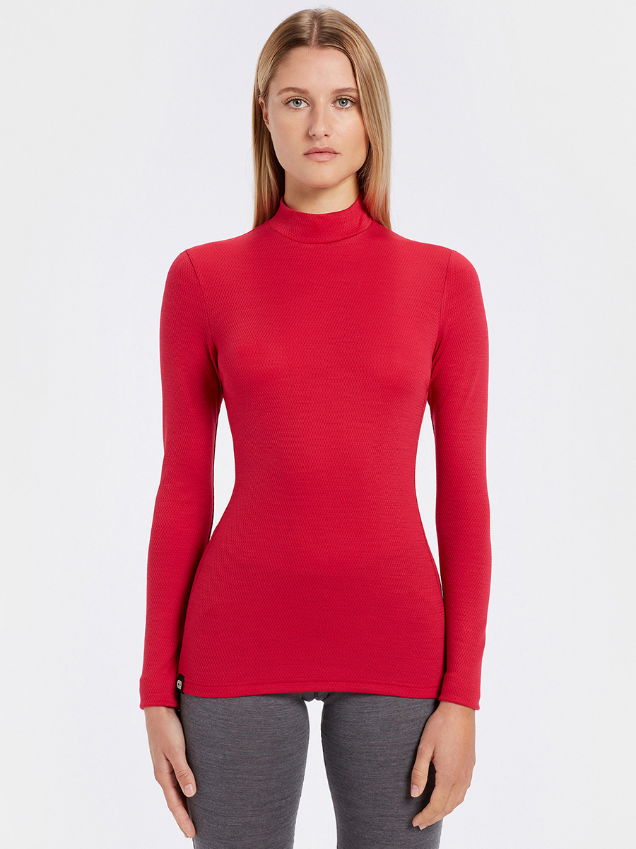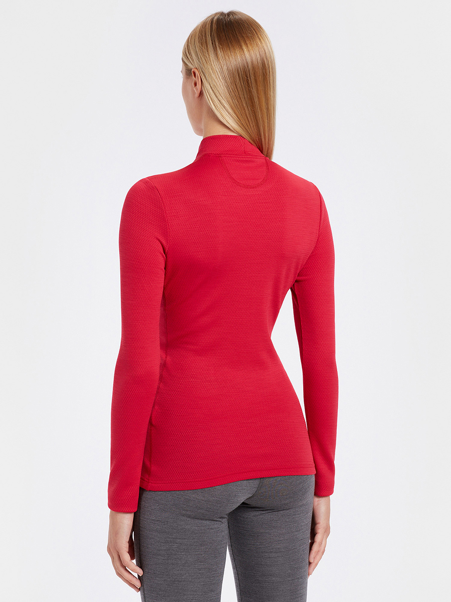 • Langarm Damen Funktionsshirt mit hohem Kragen aus weichem Merino Mesh 180 gr/m2. Elastisch, weich und atmungsaktiv, es ist ideal als Basisschicht für Sports im Freien.