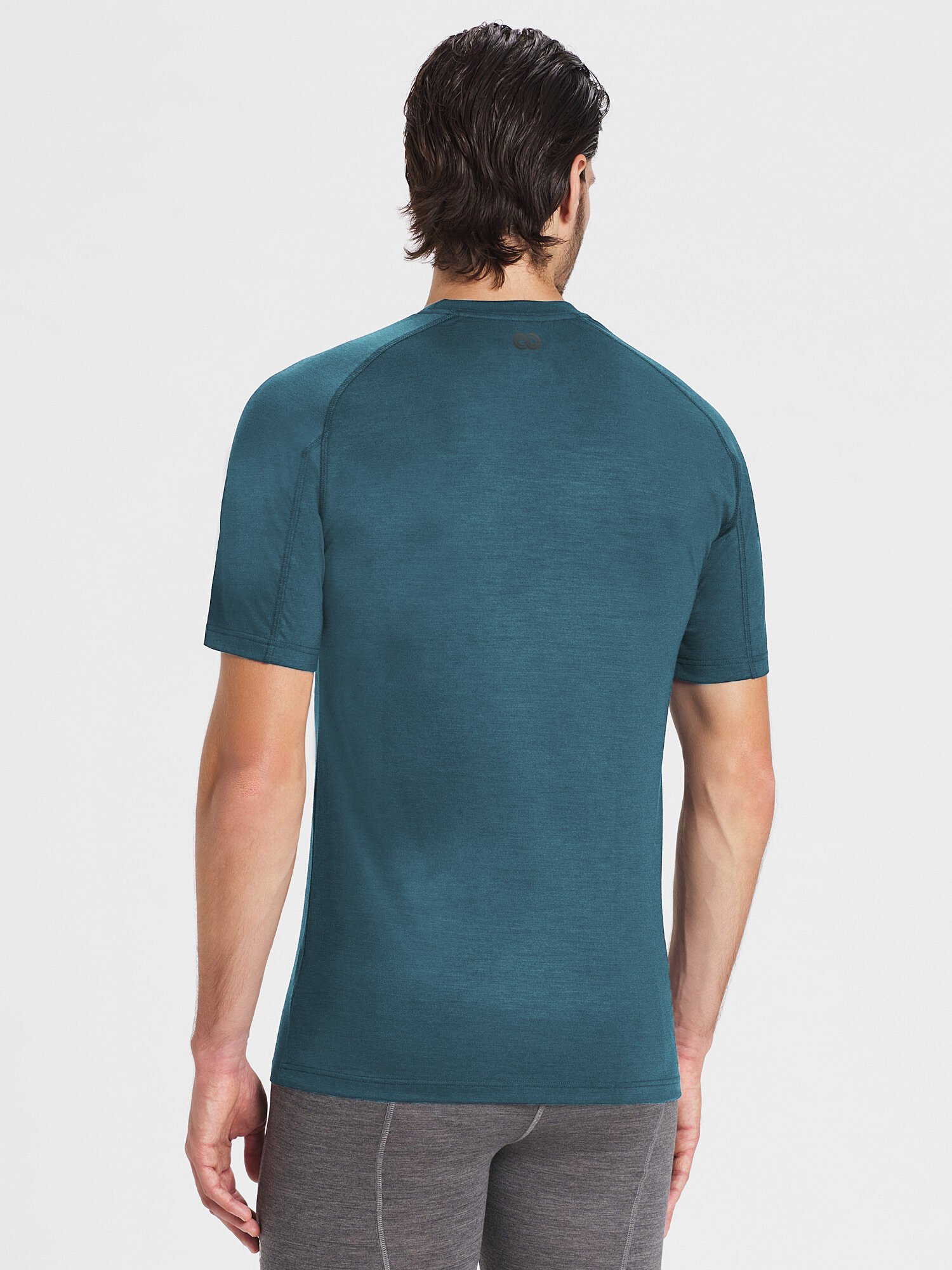 This crew neck t-shirt with short raglan sleeves feels natural and comfortable to wear. This model is made from Reda Active® 100% Merino Jersey very high performance technical fabric, which is ultra lightweight and fast drying.