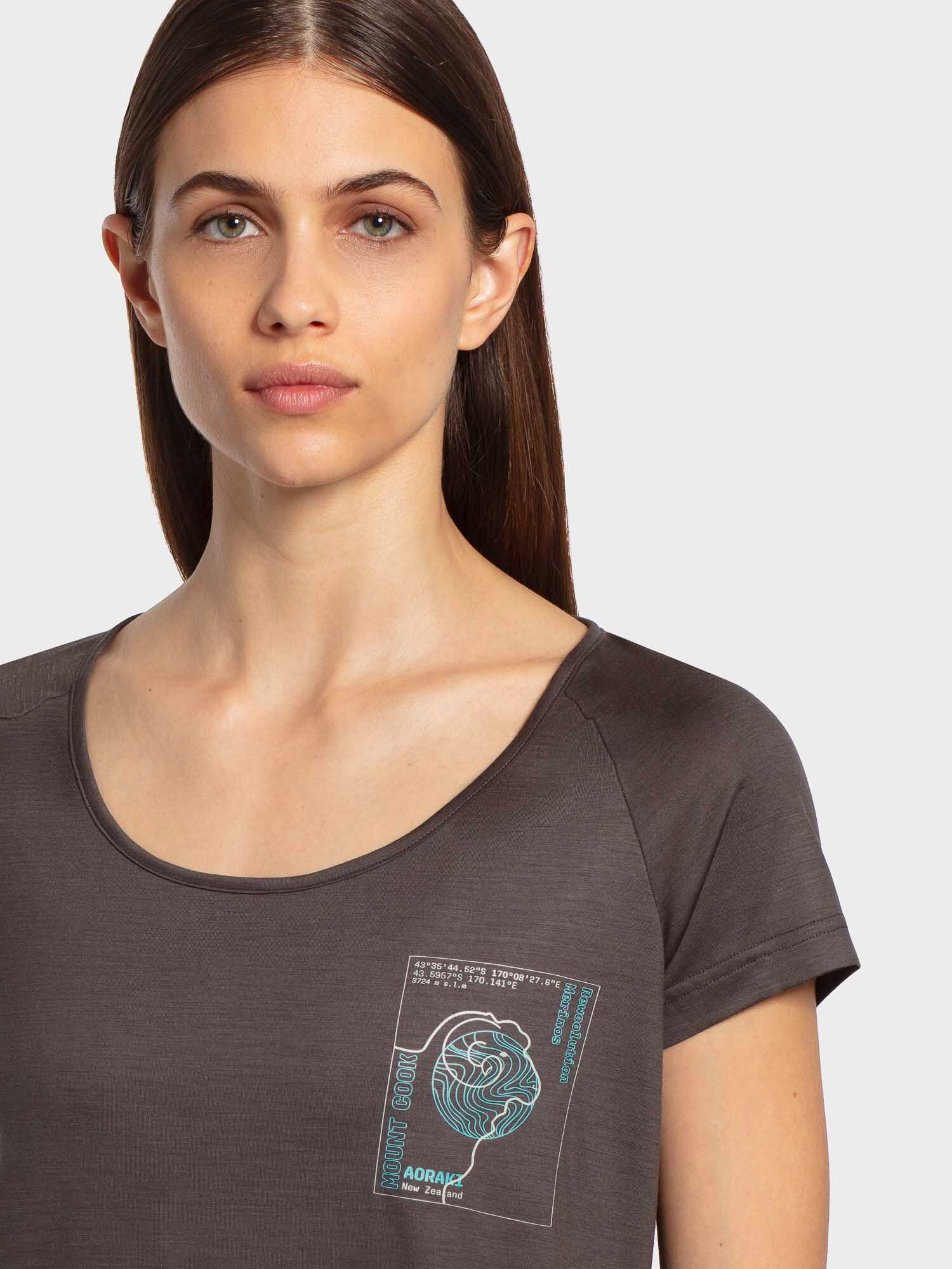 • Women's deep-neck T-shirt with short-sleeve front print. Particularly lightweight and soft, it dries quickly and thanks to its comfortable fit is ideal for both outdoor sports and leisure activities.