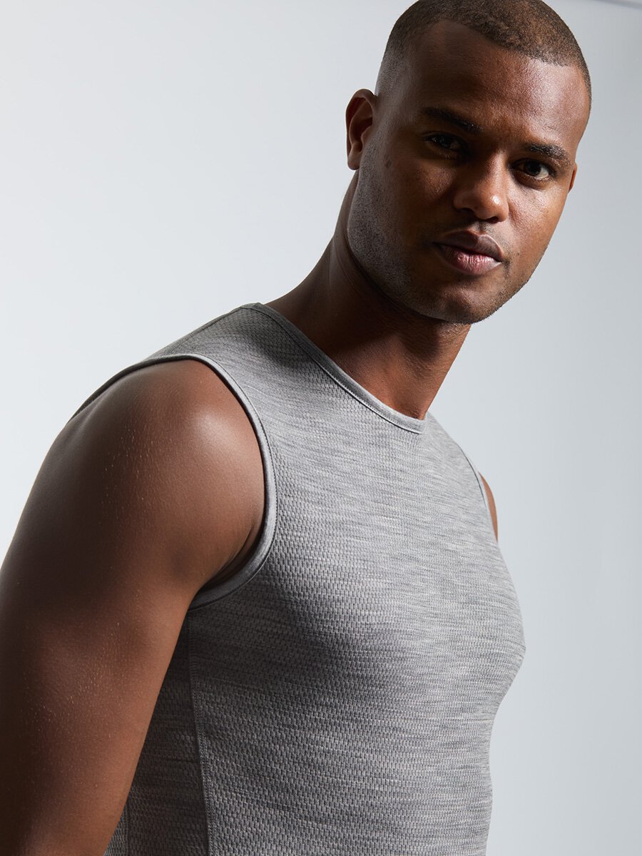 • Men's tank top in soft 180 g/m² Merino Mesh. Thermoregulating with effective
