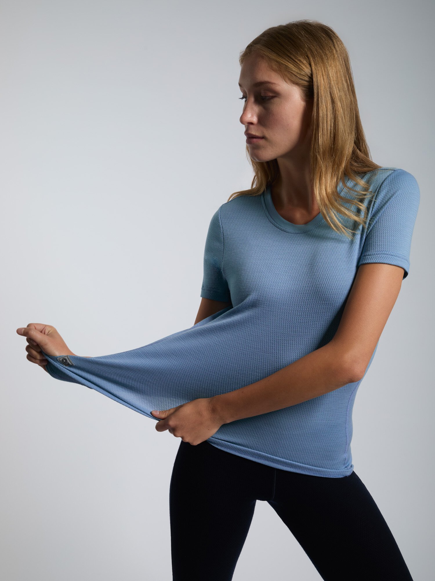 • Women's short-sleeved T-shirt in soft 180 g/m² Merino Mesh. Extremely elastic, soft and breathable, it is ideal for use as a base layer for outdoor sports activities.