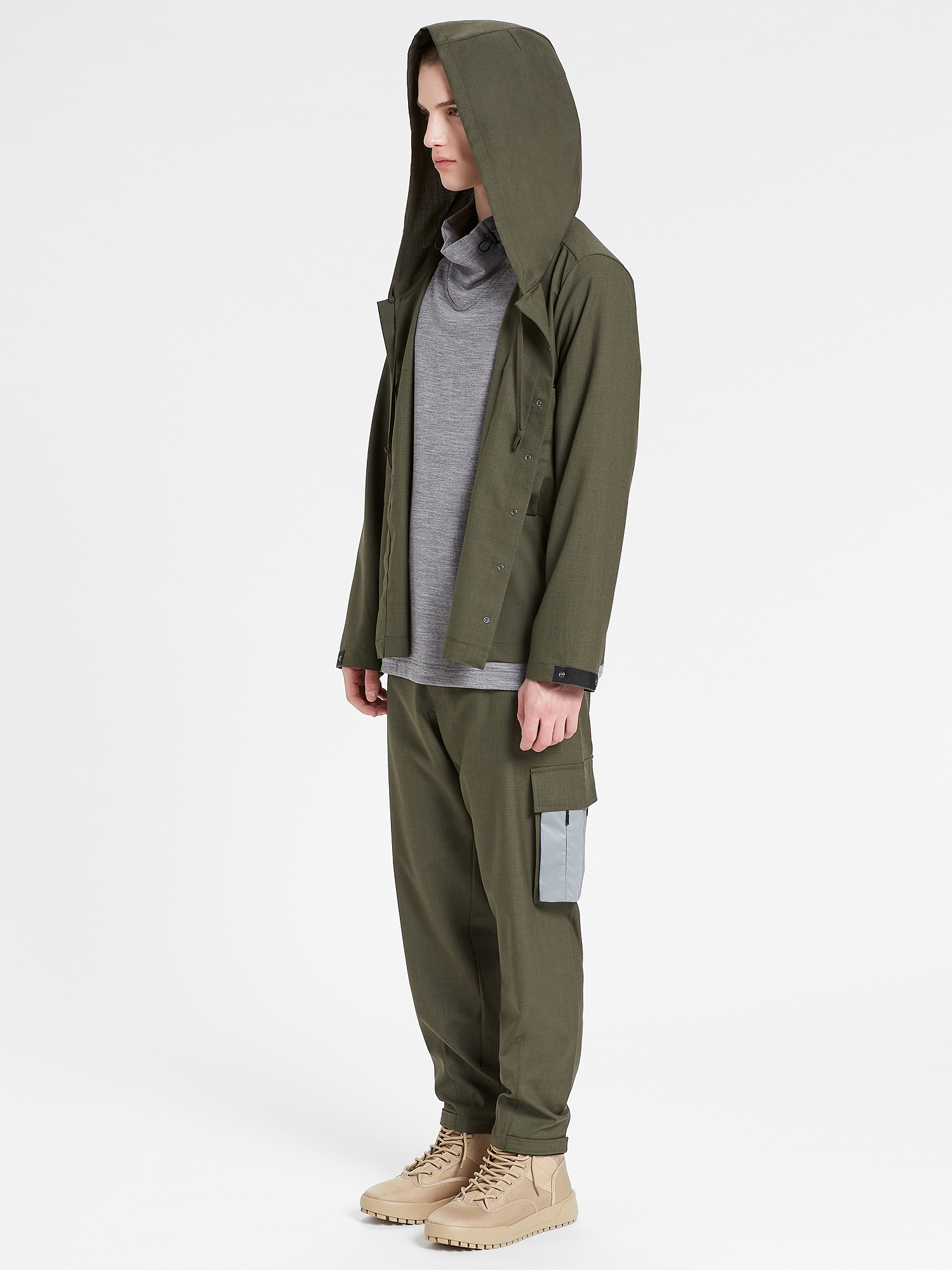 Performance and style come together in the Derwent hooded jacket. Made in Italy in 100% Reda Active® Merino Tela Cargo, an exclusive washable gabardine, this overshirt with a contemporary design is extremely soft, breathable and thermoregulating. Perfect for sporty but refined looks.