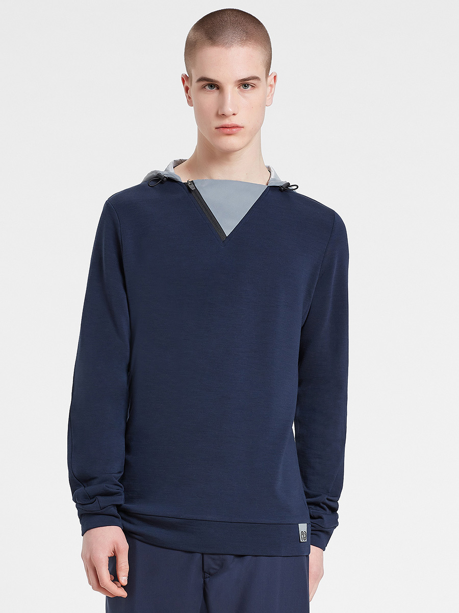 Sweatshirt mit Kapuze aus weichem Merino French Terry. Ideal für die Freizeit, in der Stadt und auf Reisen.