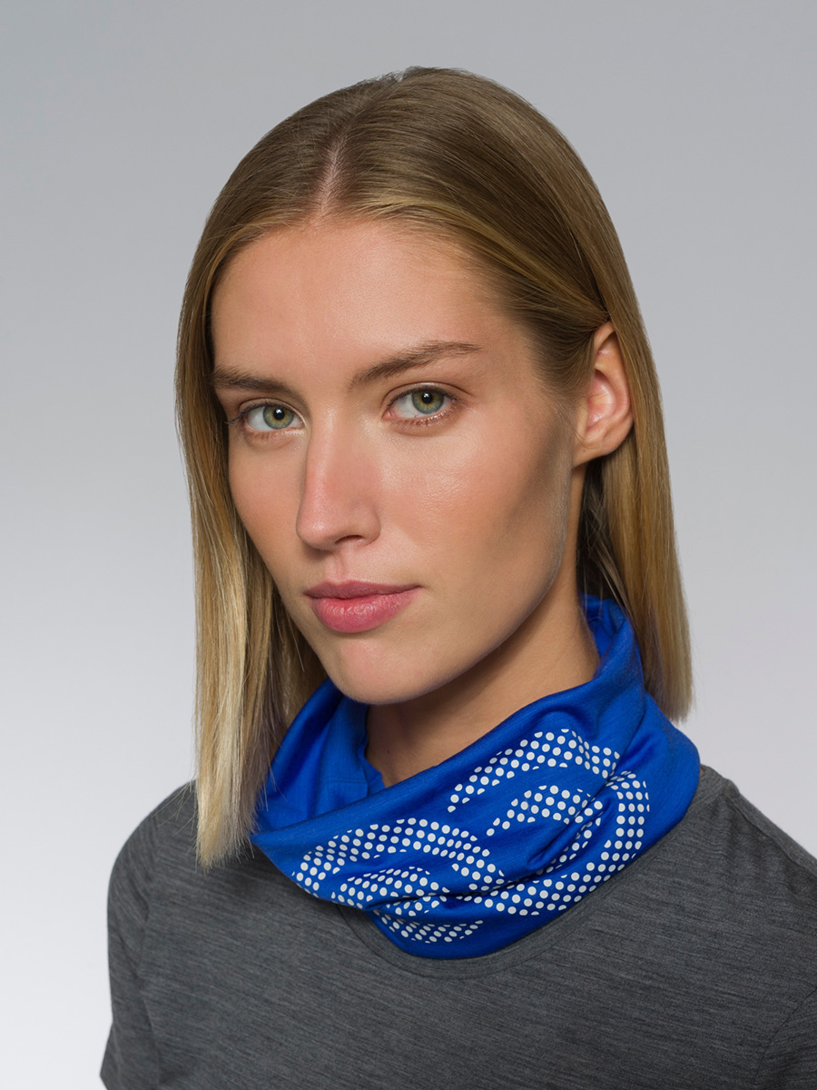 Fascia multifunzione in merino jersey con logo Rewoolution a contrasto. Morbido sulla pelle e perfetto per essere indossato come scaldacollo o fascia per capelli per tutte le tue attività outdoor.