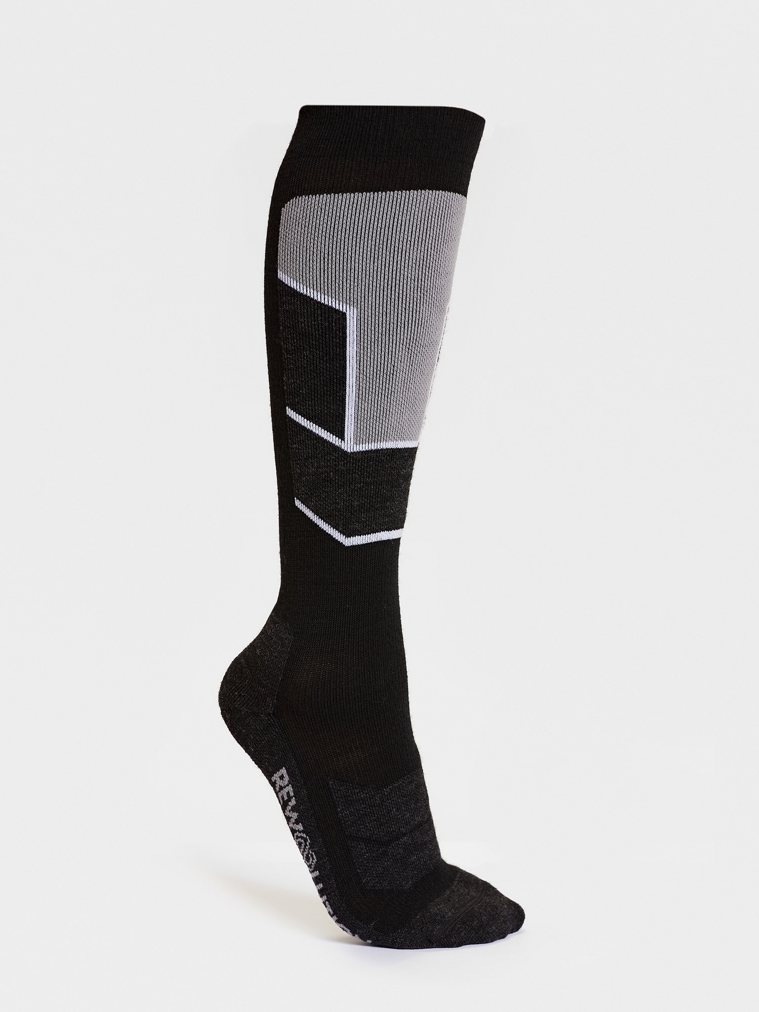 Le nuove calze Ski Mid presentano un mix di lana con un 52% di merino ultrafine, 46% di poliammide e solo un 2% di elastane che ne rinforza le parti anteriore e posteriore soggette a maggiore stress.
