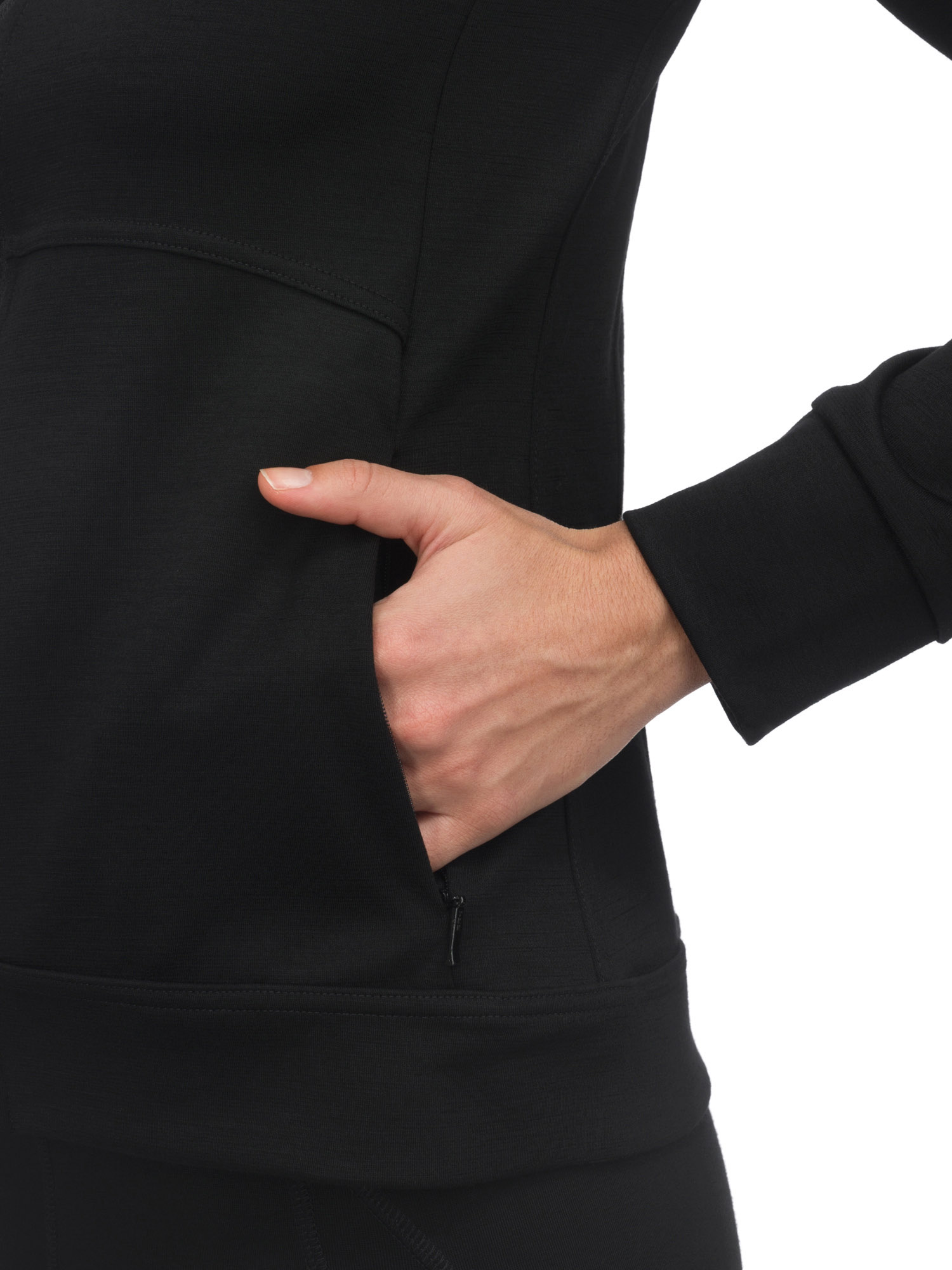 • Felpa da donna full zip in merino jersey da 280 gr/m2. Molto confortevole e di peso medio, ideale come mid-layer. Contiene perfettamente la temperatura generata dal corpo.