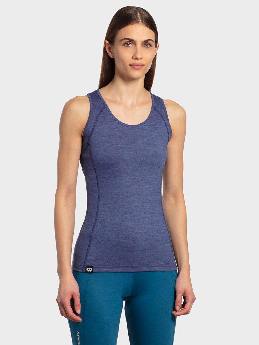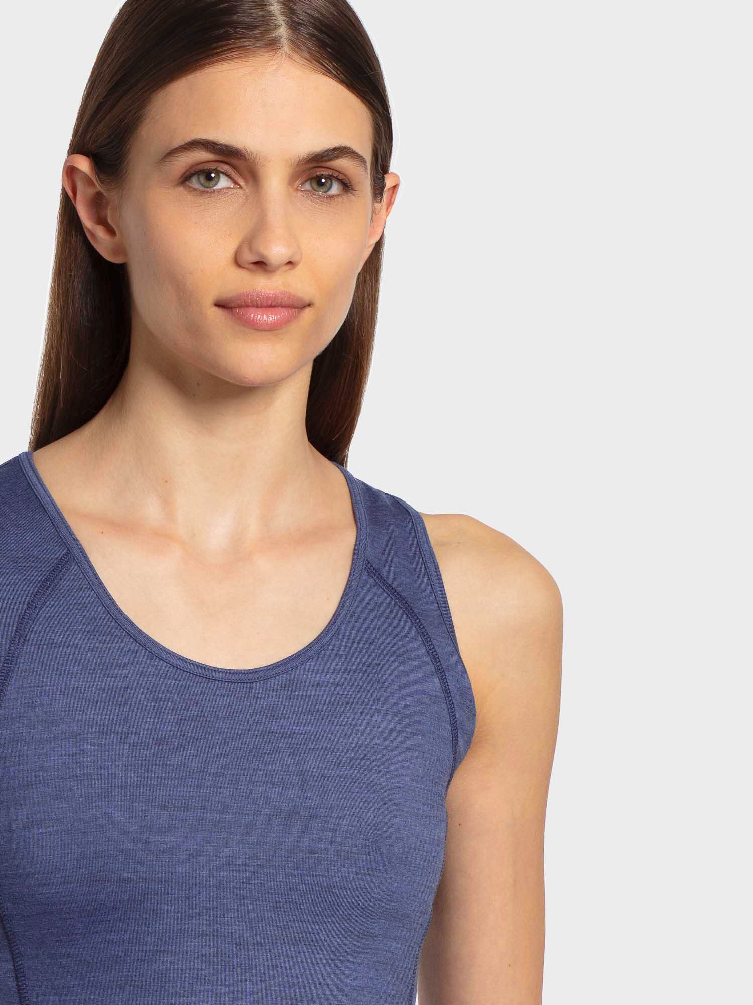 Canotta da donna in merino jersey con scollatura rotonda, giromanica ampio e cuciture piatte.
