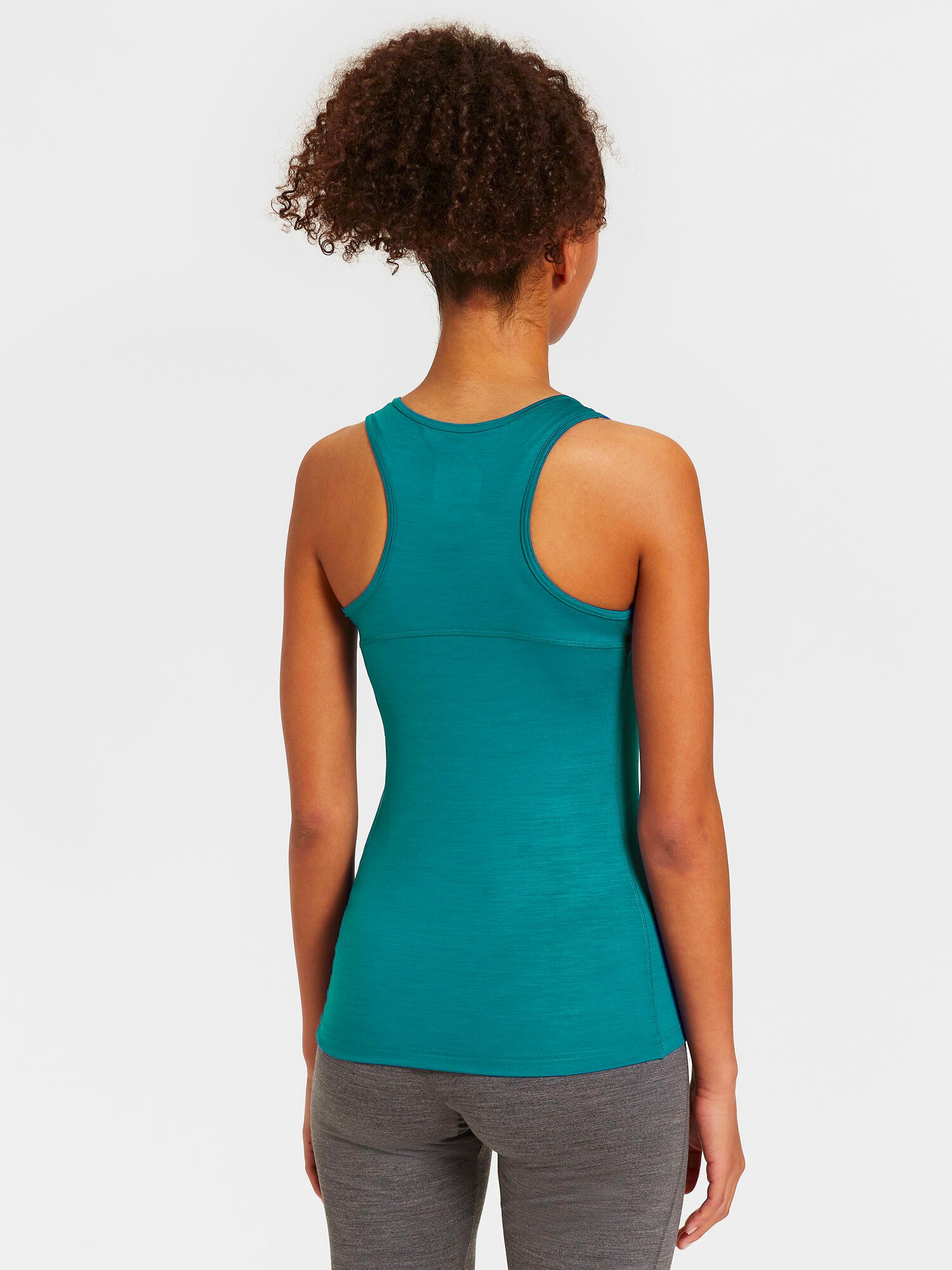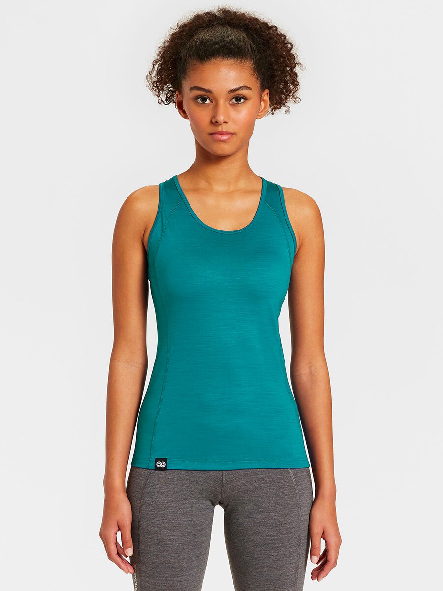 • Canotta da donna in merino jersey con scollatura rotonda, giromanica ampio e cuciture piatte.