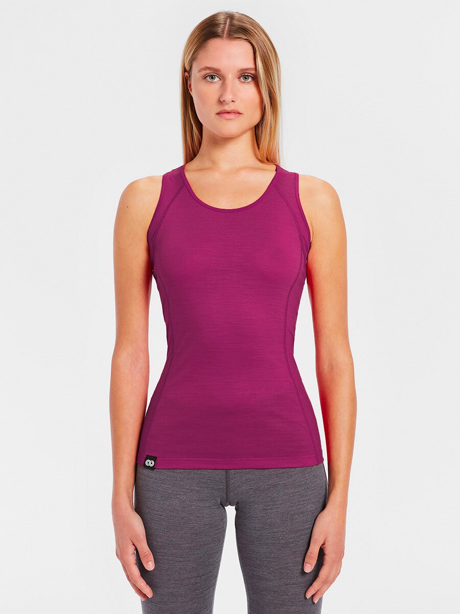 • Canotta da donna in merino jersey con scollatura rotonda, giromanica ampio e cuciture piatte.