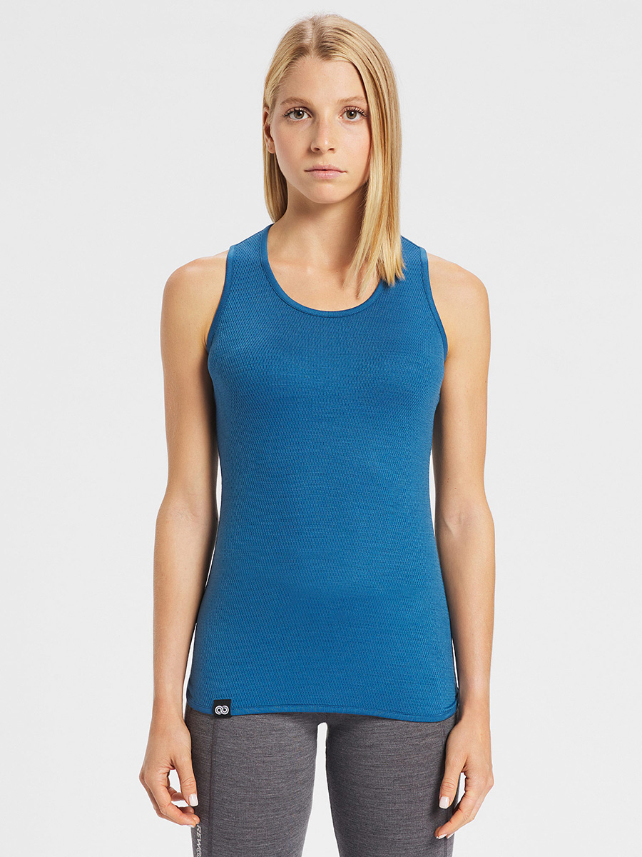 Tank top da donna in merino mesh elastico e termoregolante, ideale come base layer per attività sportive all'aperto.