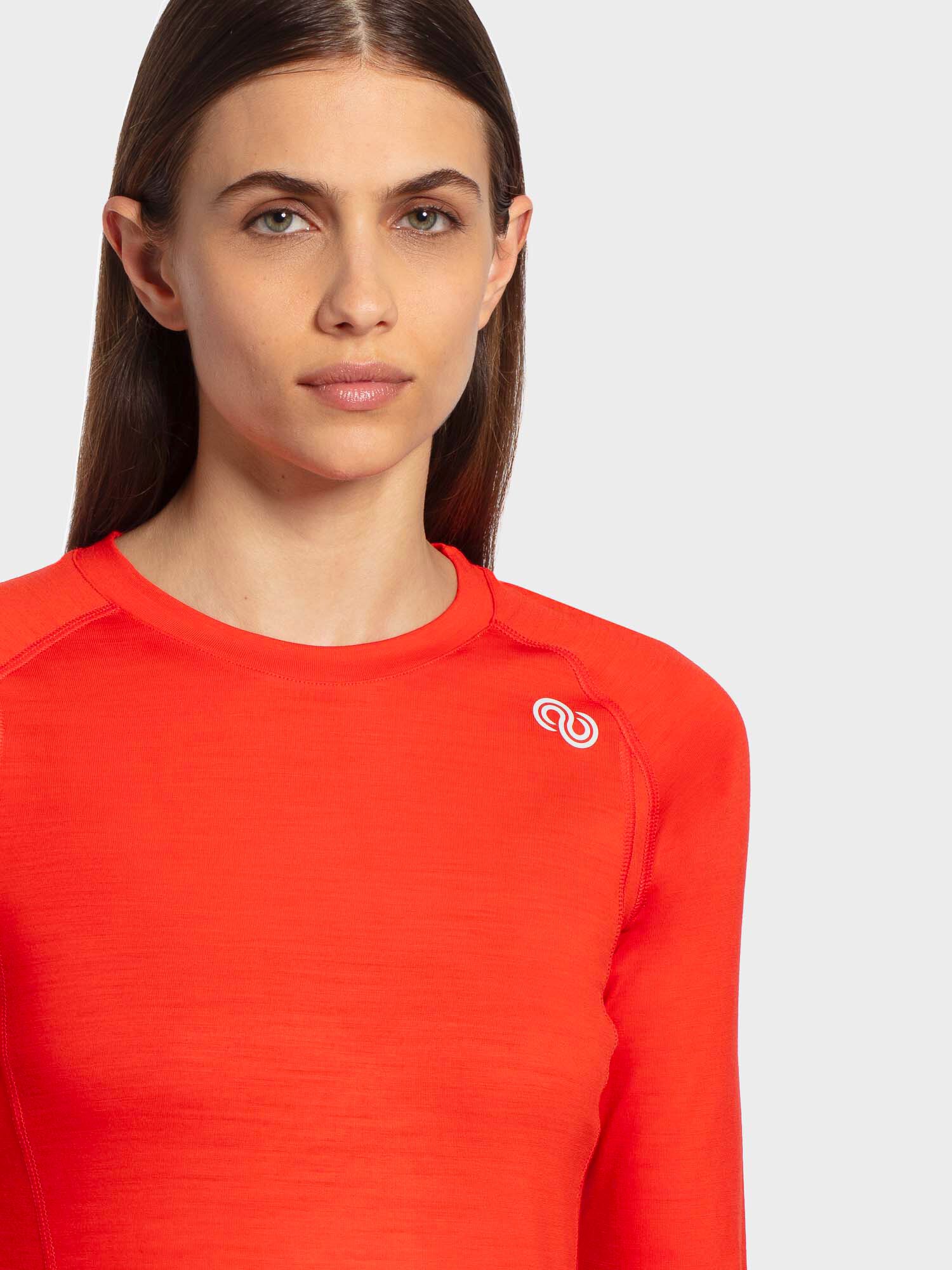 • T-shirt base layer da donna a manica lunga in 100% Merino Jersey da 190 gr/m2. Altissimo comfort, traspirabilità e resistenza termica. Ideale come strato base per attività sportive all'aperto.