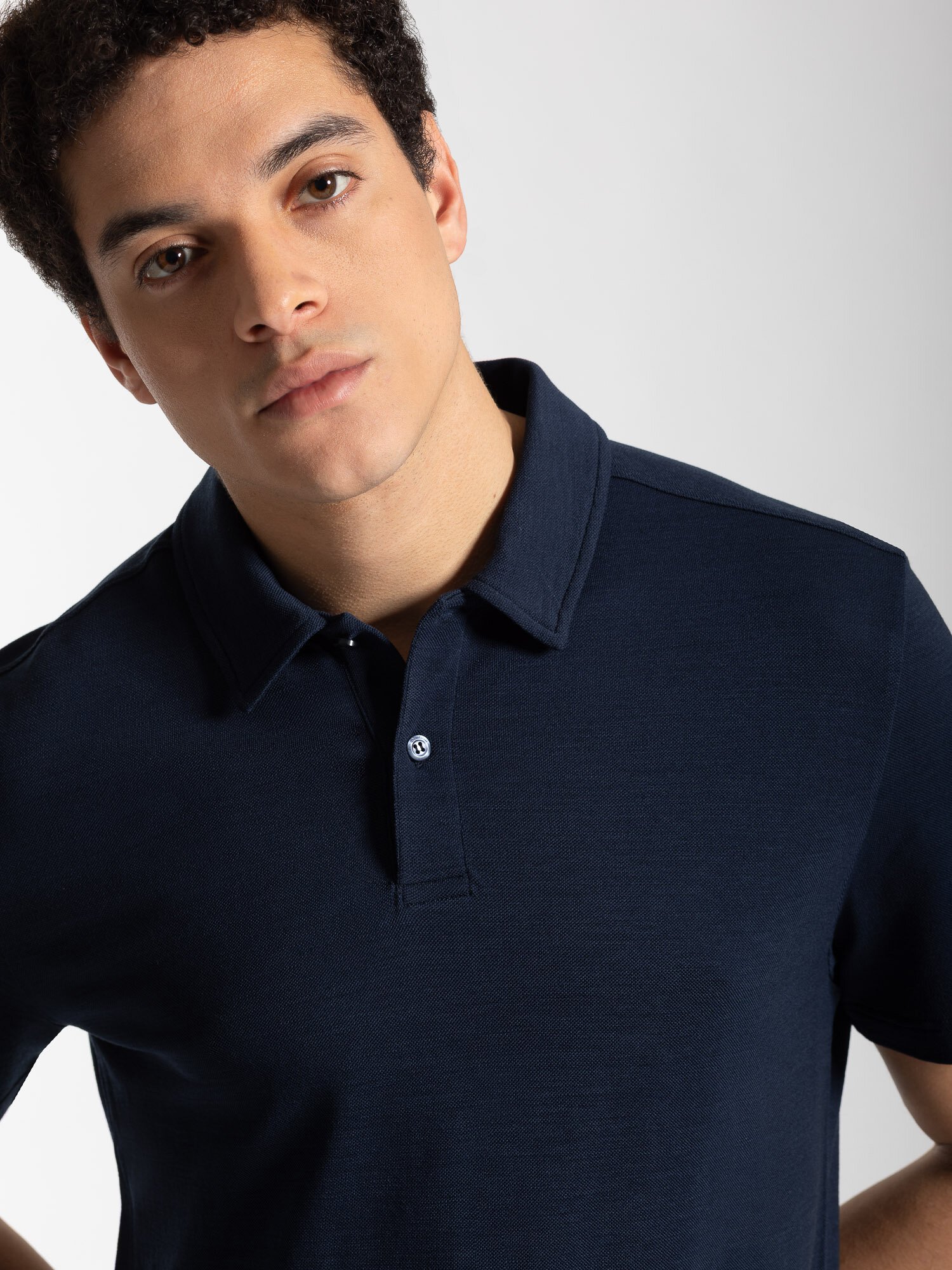 Polo a maniche corte, collo a camicia e due bottoni. Il modello è realizzato in 100% Reda Active® Merino Piquet, finezza 17,5 micron, esclusivo tessuto natural stretch, particolarmente traspirante grazie alla struttura alveolare del tessuto.