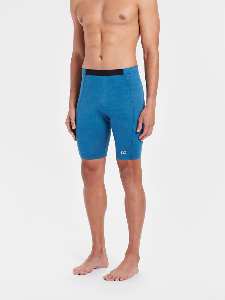 • Leggings corti da uomo dalla vestibilità slim in lana merino con elastico e cuciture piatte. Base-layer perfetto per sport all'aperto come trail running e trekking.