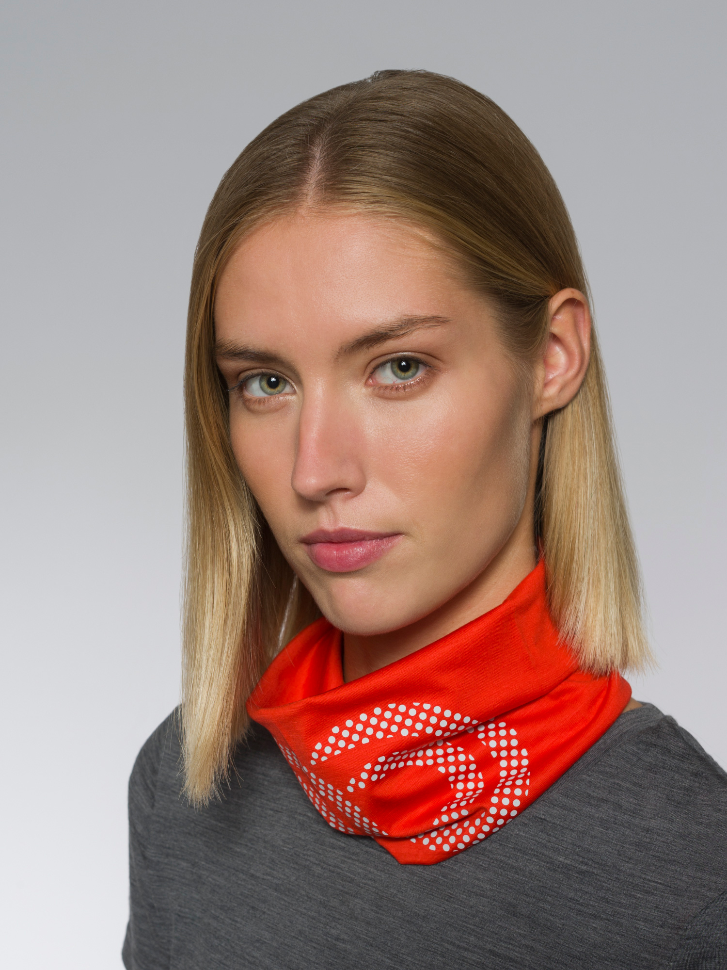 Fascia multifunzione in merino jersey con logo Rewoolution a contrasto. Morbido sulla pelle e perfetto per essere indossato come scaldacollo o fascia per capelli per tutte le tue attività outdoor.