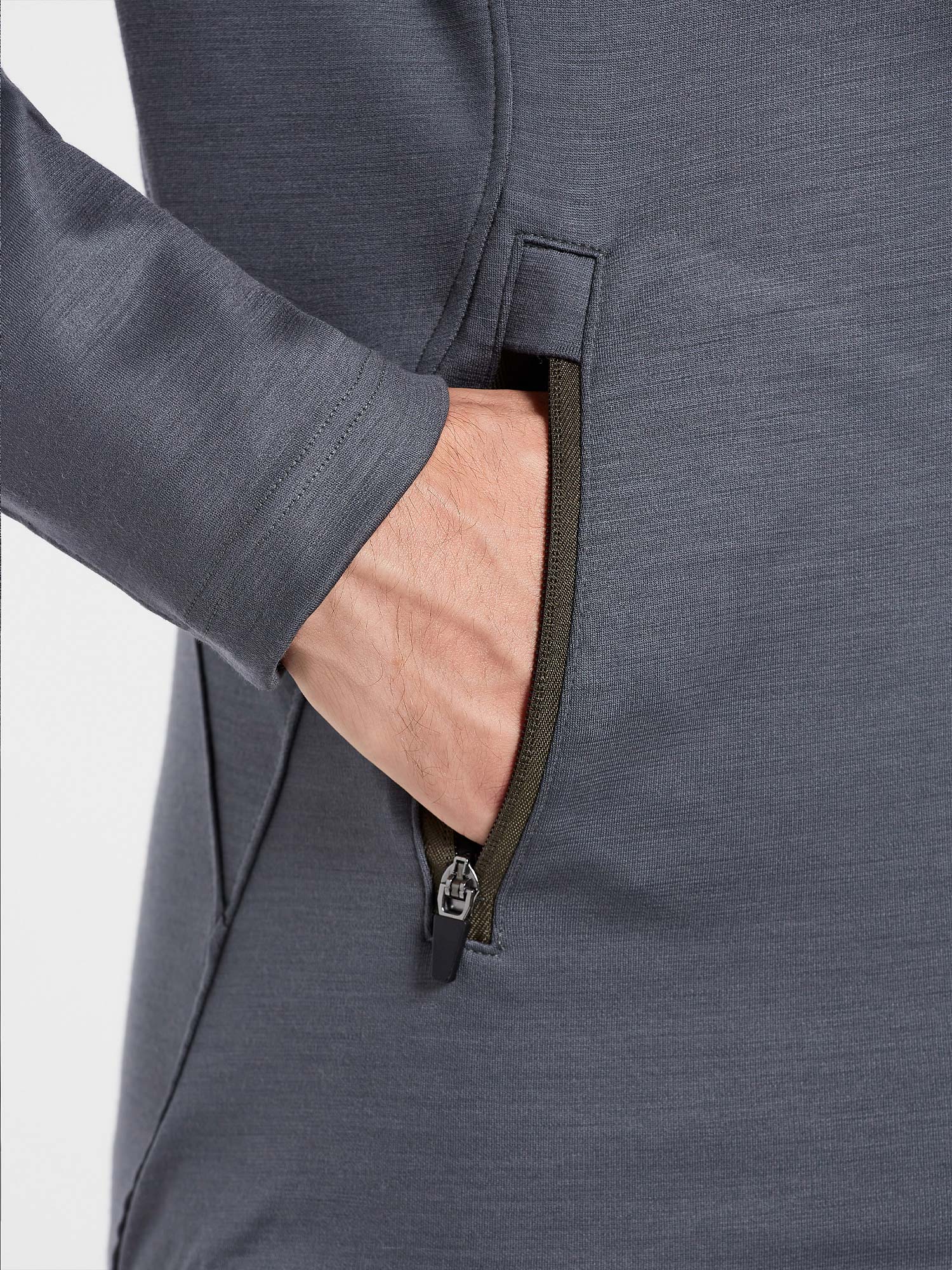 • Men's mid-layer sweatshirt with full zip in merino jersey. Soft and light, it offers naturally thermoregulation by completely eliminating the accumulation of humidity. Ideal for outdoor activities.
