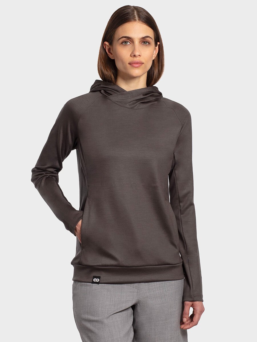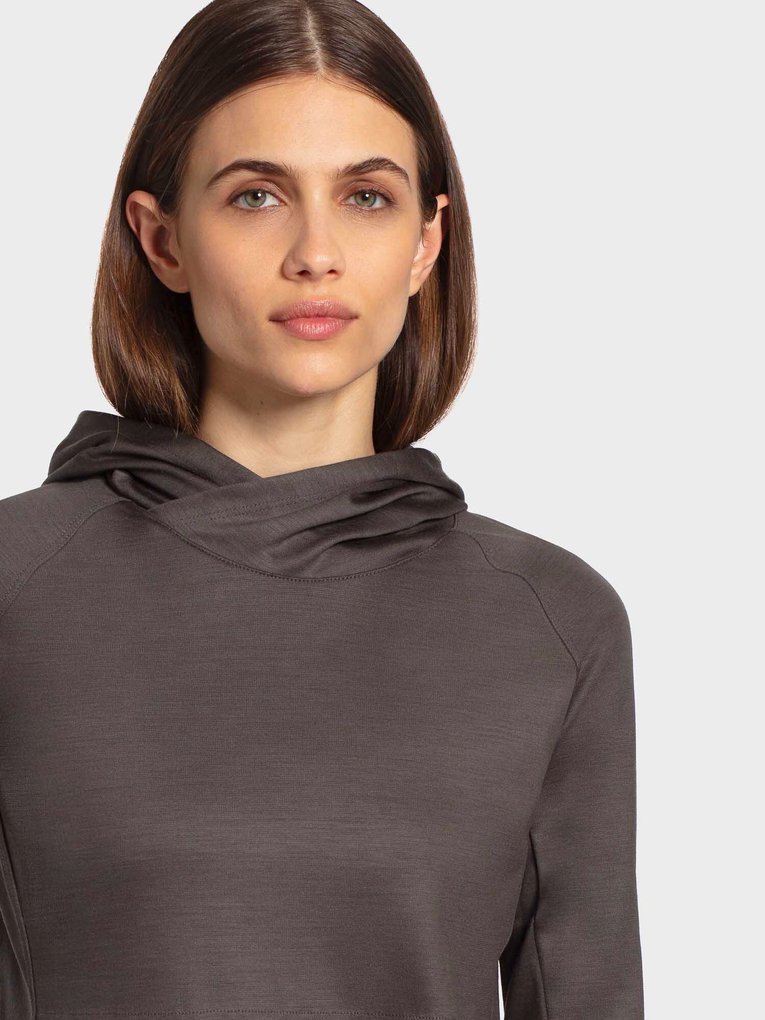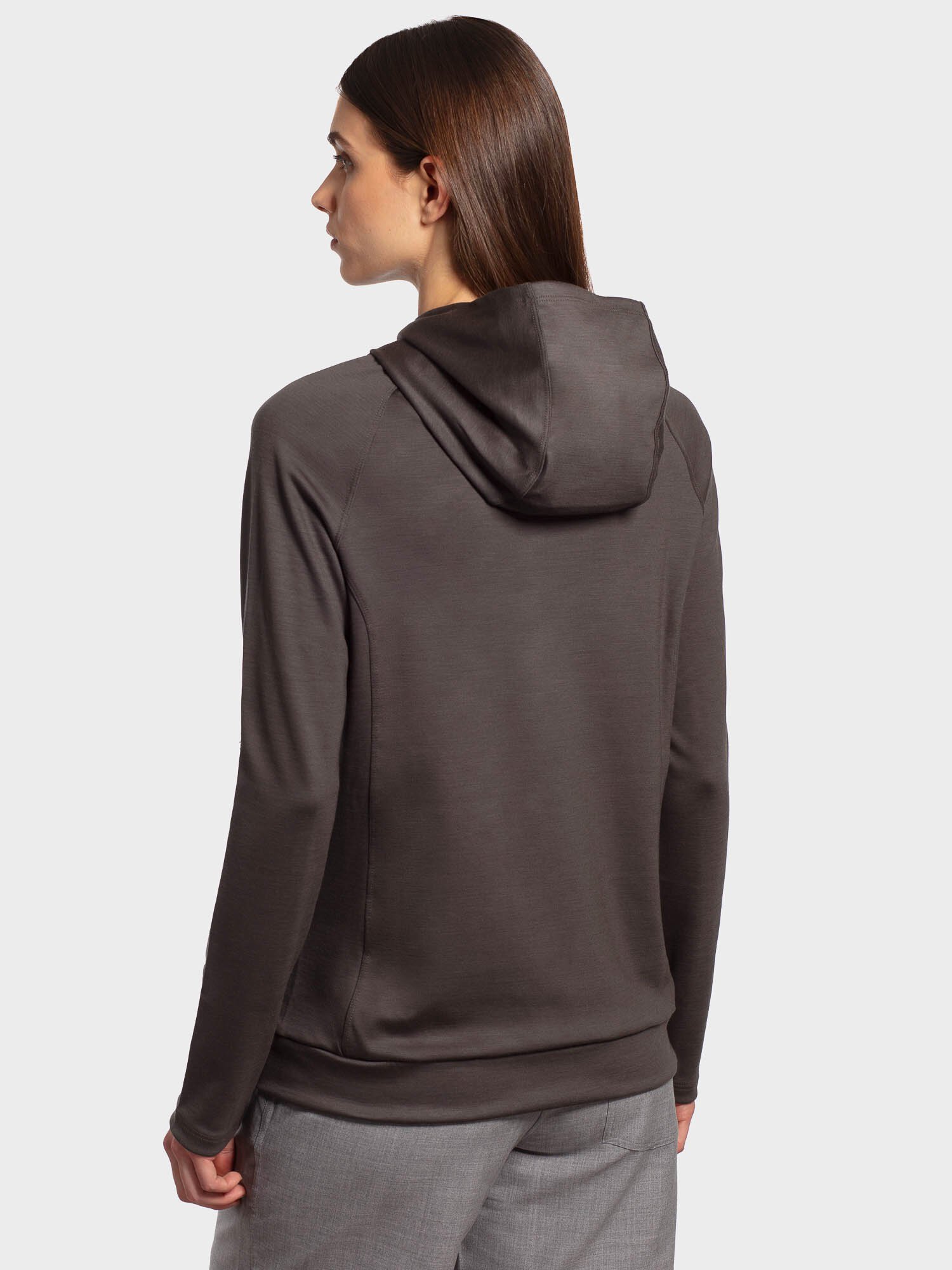 • Women's sweatshirt with wrap-around hood and pouch pockets on the front. Soft and heat-regulating, ideal for both outdoor sports and leisure activities.