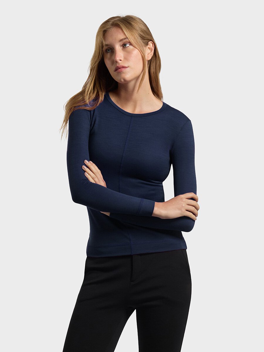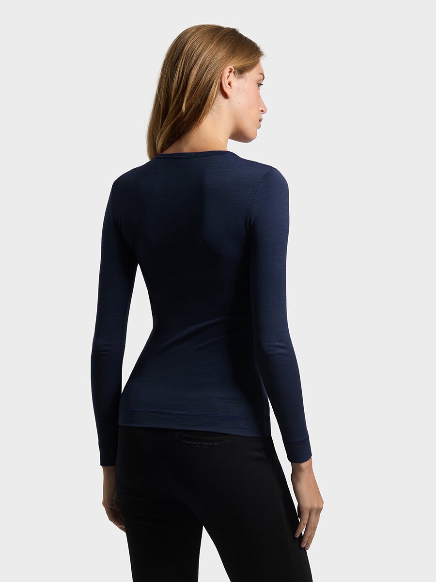 An essential and versatile garment, this long-sleeved crew neck T-shirt is made from lightweight, stretchy and extremely comfortable Merino Jersey Twist fabric, 17.5 micron fineness, combining breathability and softness in an elegant and dynamic design. Ideal for everyday comfort without compromising on style.