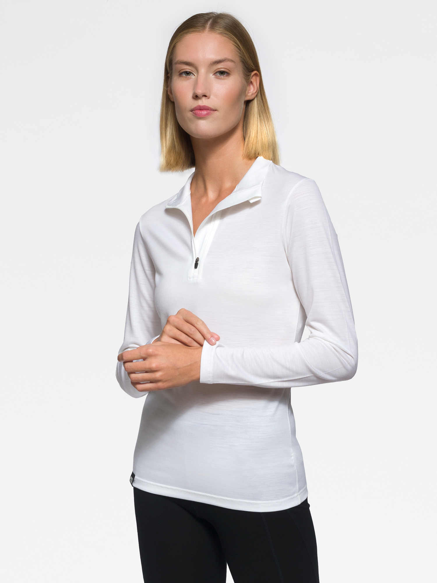 Women's half-zip sweatshirt in 190 gr/m2 Merino Jersey. It offers excellent comfort, maximum breathability and thermoregulation.