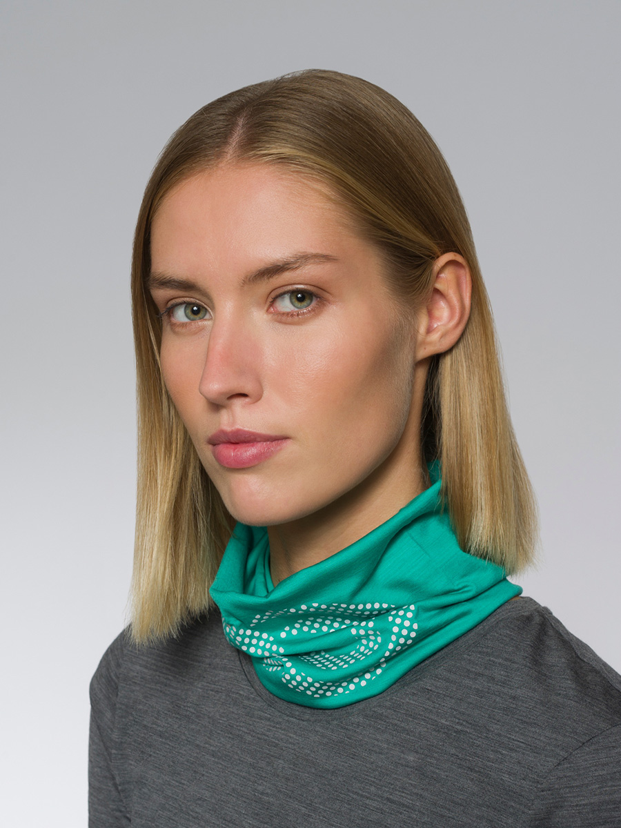 • Multifunctional band in merino jersey with contrasting Rewoolution logo. Soft on the skin and perfect to be worn as a neck warmer or headband for all your outdoor activities.