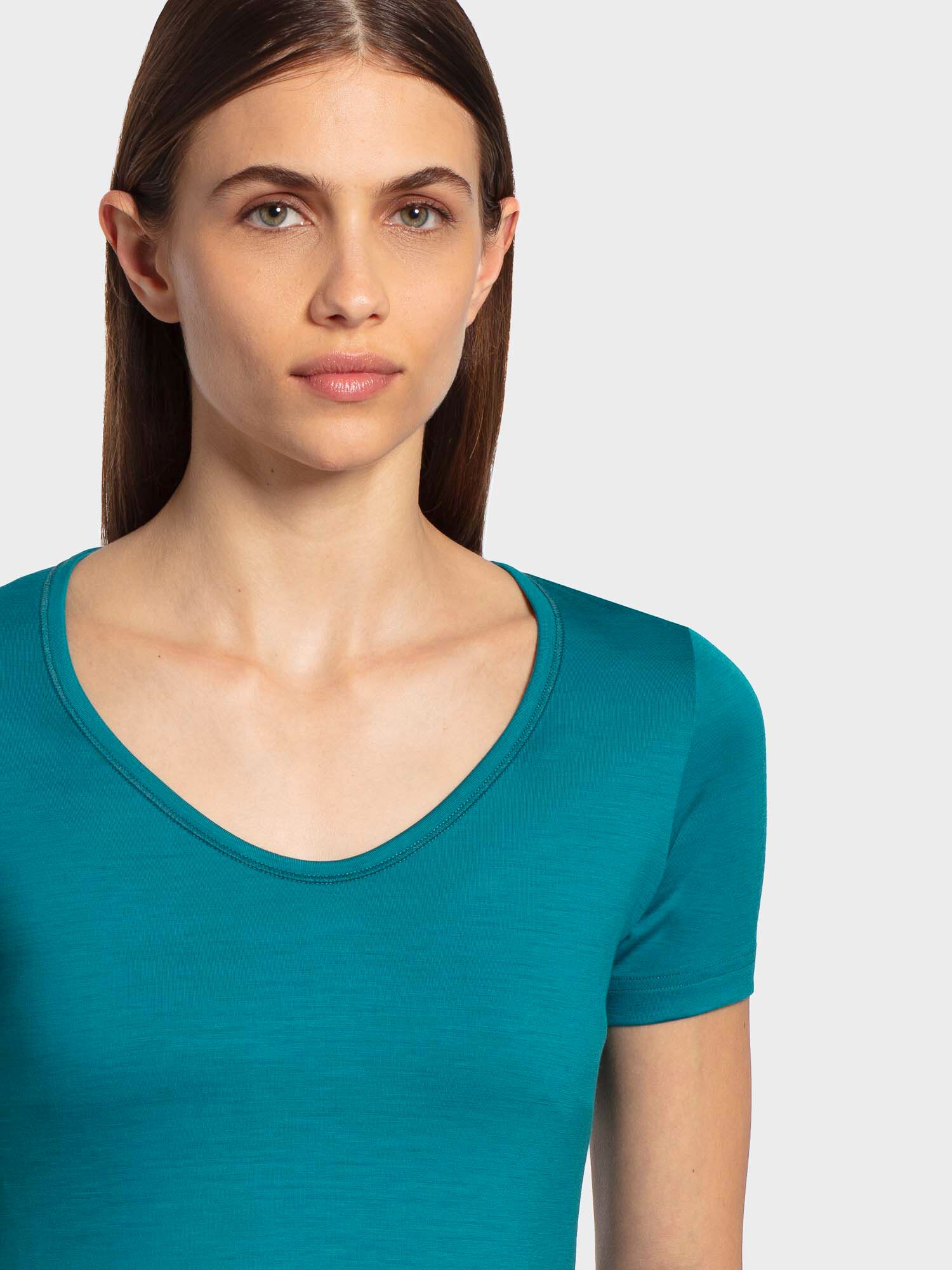 • Women's tight-fitting t-shirt with short sleeves and deep neckline in lightweight 140 gr/m2 jersey, perfect as underwear since it is light, soft in contact with the skin, does not pinch, is odourless, breathable and easy to wash.