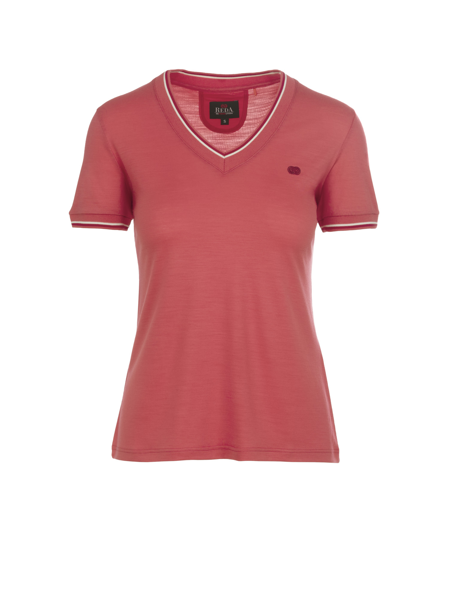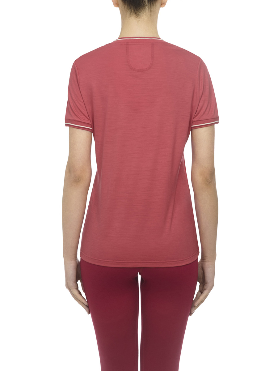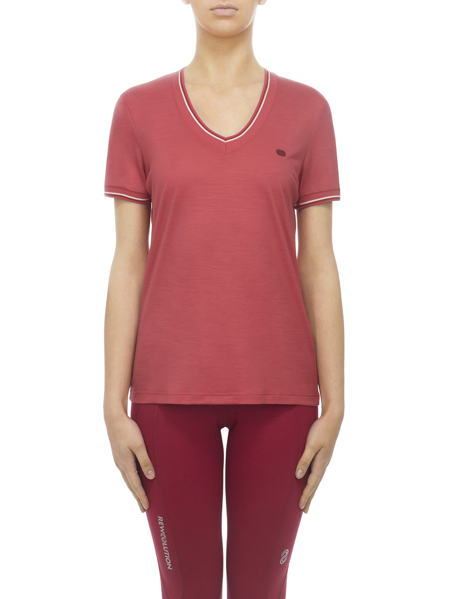 Women's short-sleeved T-shirt in merino jersey 140 gr/m2. Regular fit and V-neck.