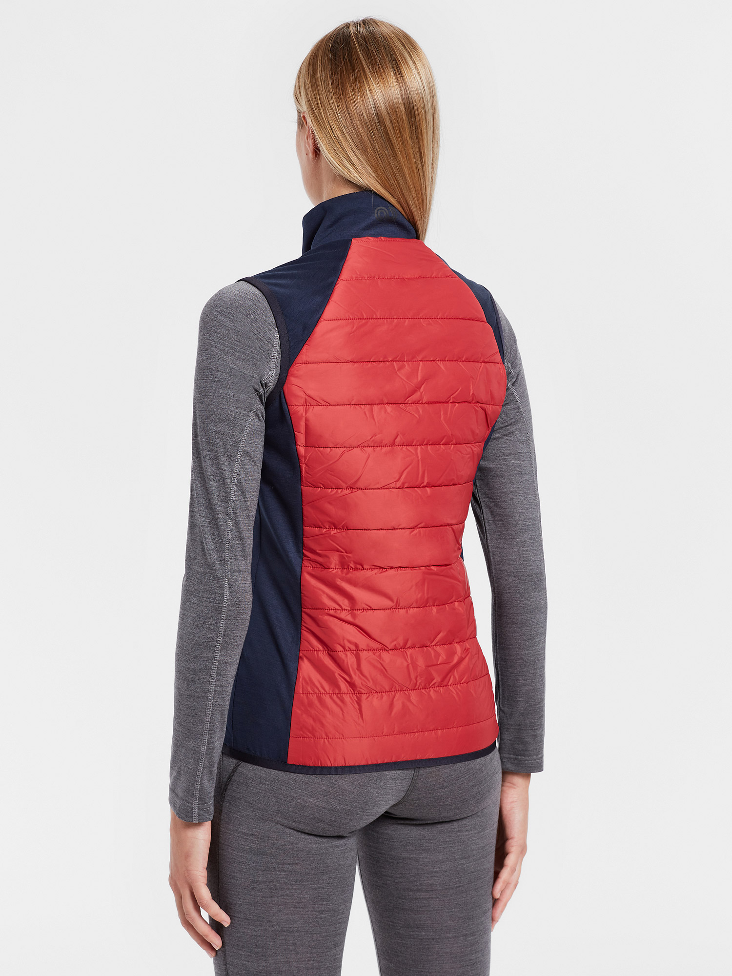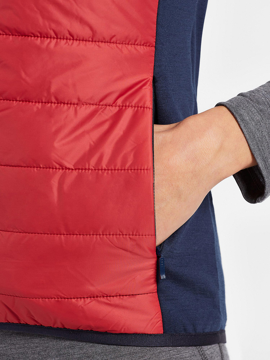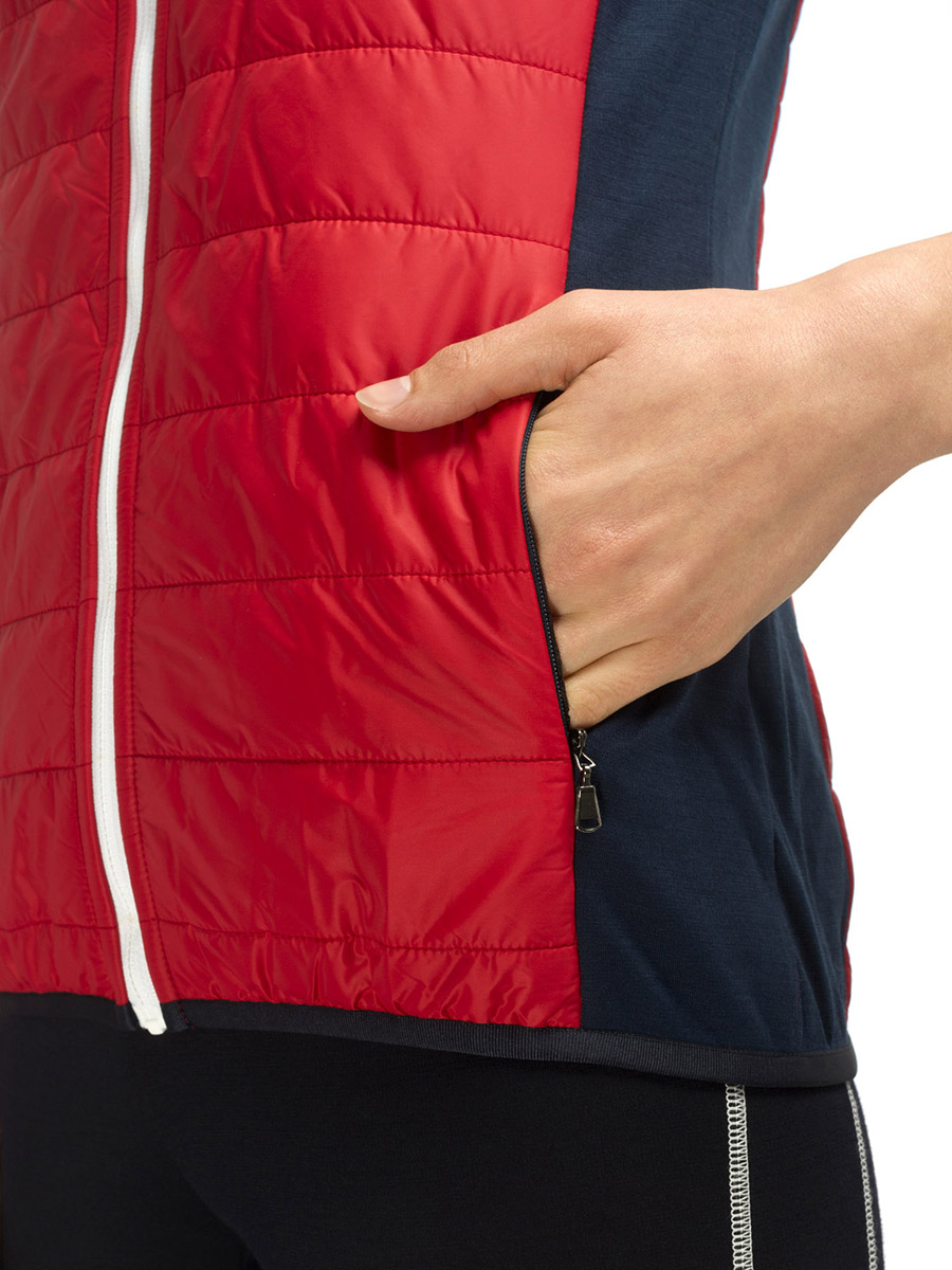 Full Zip vest made of Reda Active® Merino Punto Roma fabric, ultralight WR Nylon, Quilted to Thermo-Padding in Recycled Polyester, lined by Sensitive® Fabrics.