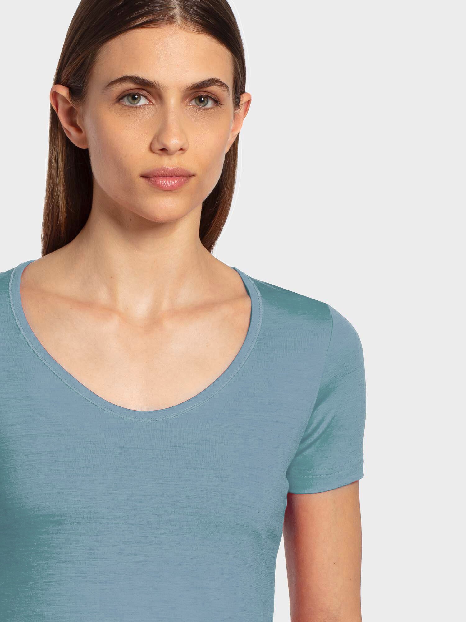 • Women's tight-fitting t-shirt with short sleeves and deep neckline in lightweight 140 gr/m2 jersey, perfect as underwear since it is light, soft in contact with the skin, does not pinch, is odourless, breathable and easy to wash.