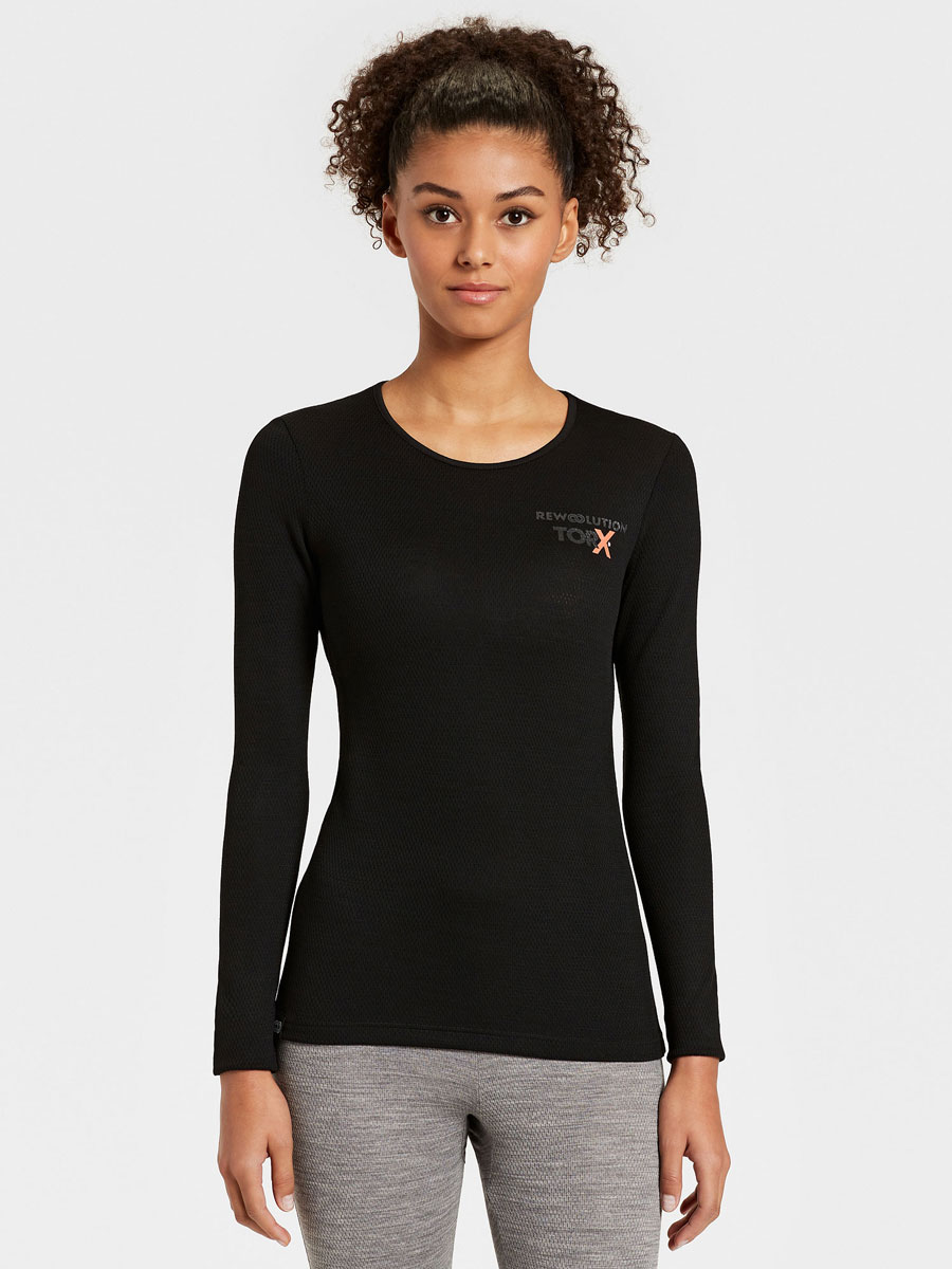 Women's long-sleeved round neck T-shirt in soft Merino Mesh 180 gr/m2. Elastic, soft and breathable, ideal if used as base layer for outdoor sports activities such as snow sports, trekking and mountaineering.