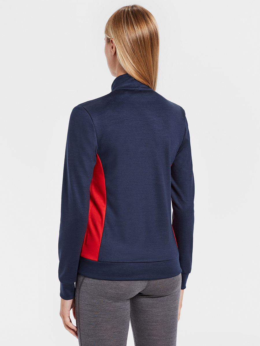 This full zip model, with long sleeves and contrasting sides, is made of 100% Reda Active® Merino Punto Roma, a uniformly smooth medium weight technical fabric that ensures exceptional thermal resistance, making this mid-layer ideal for outdoor sports even in changing weather conditions.