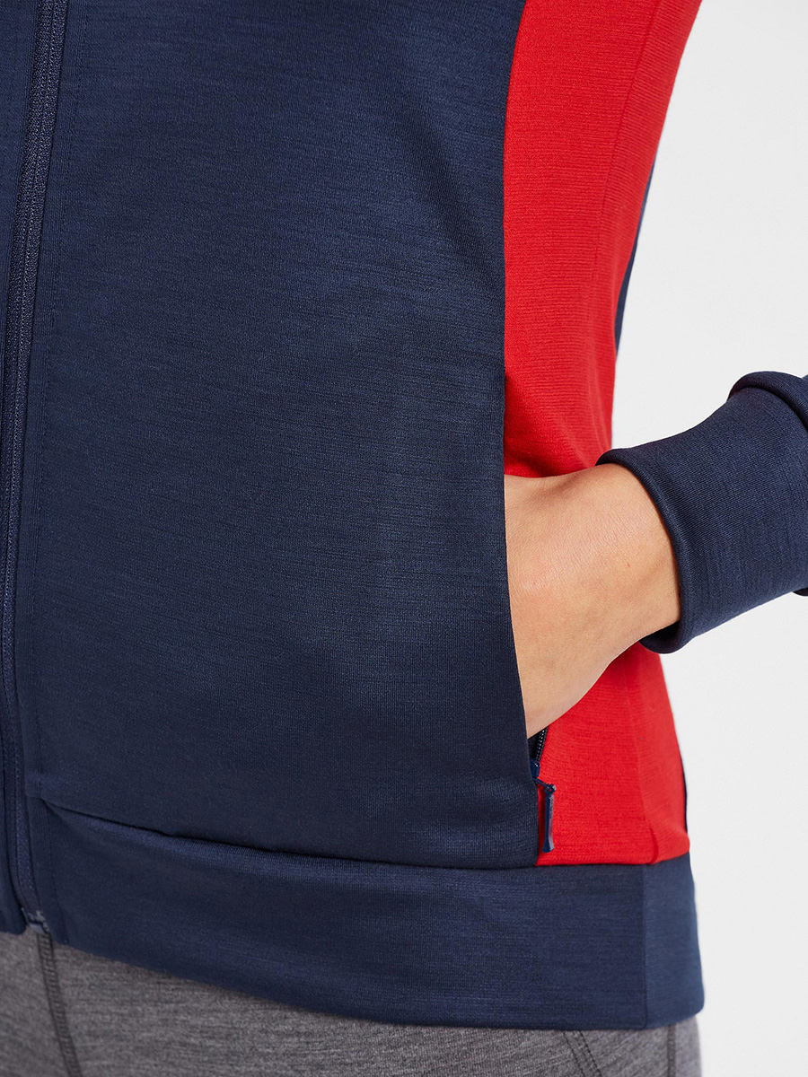 Regular fit full zip sweatshirt with invisible pockets and contrasting sides. Soft and thermoregulating, ideal as mid-layer for outdoor sports and leisure.